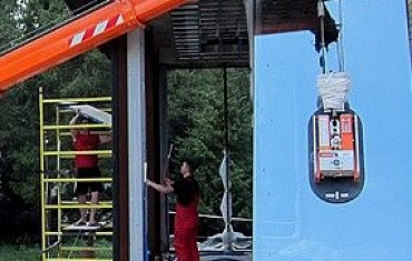 В начале июля, мини-кран JEKKO SPX 1040 в паре с вакуумным захватом Glass Boy 750 выполнил ряд уникальных работ по установке cтеклопакетов высотой 4м., шириной 3м., весом 700 кг. Сложность работы заключалась в местности, на которой происходил монтаж.